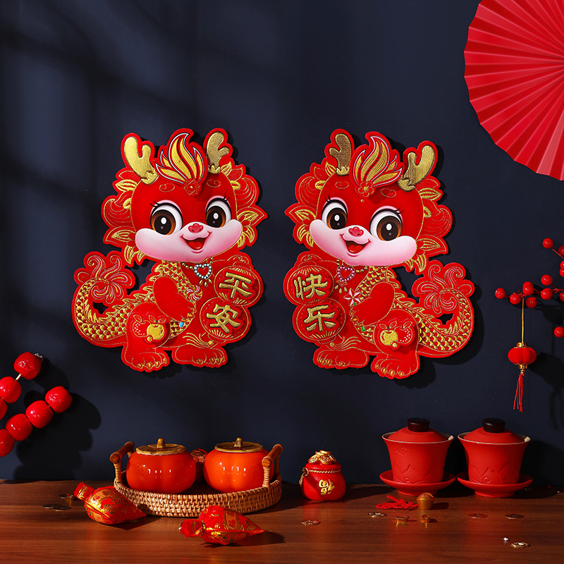 竜年のシールの新型の漫画の生肖の扉は植毛の福の字を貼って春節の新年の窓を貼って装飾の卸売りを貼ります。