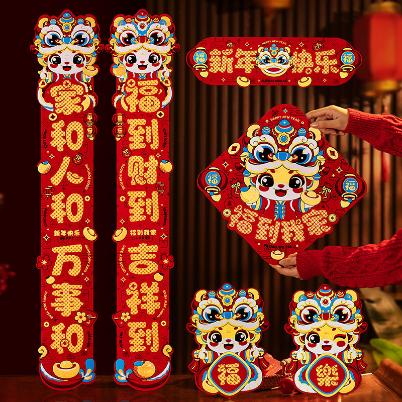 蛇年対聯2025春節家庭用高級アニメ綿布春聯新年福字門装飾卸売り