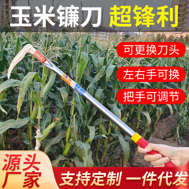 トウモロコシのわらを刈る専用のトウモロコシの鎌は豆のヒマワリの草刈刀の多機能の一体を切って頭を換えて草刈りをします。