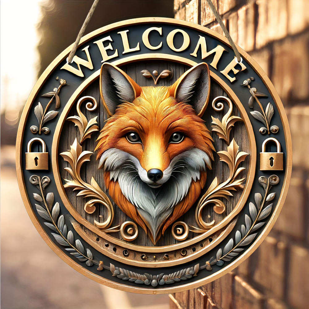 現物創意漫画の木製工芸品の表札は丸いキツネの標識を掛けて木の札の家庭の装飾品を掛けます。