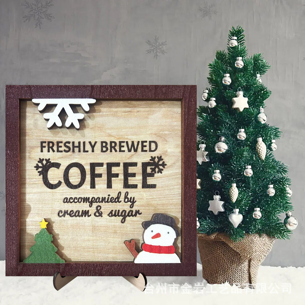現物クロスボーダー木製クリスマスデスクトップ装飾置物クリエイティブ木製雪だるまコーヒーシーンアレンジ小道具