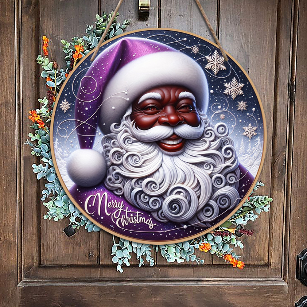 現物木製抽象黒人サンタクロース円形標識看板木製表札クリスマス祝日装飾看板