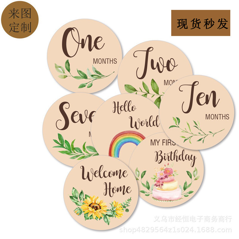 クロスボーダー木製赤ちゃんマイルストーン新生児出生記念ブランド両面uv印刷円形撮影道具カード