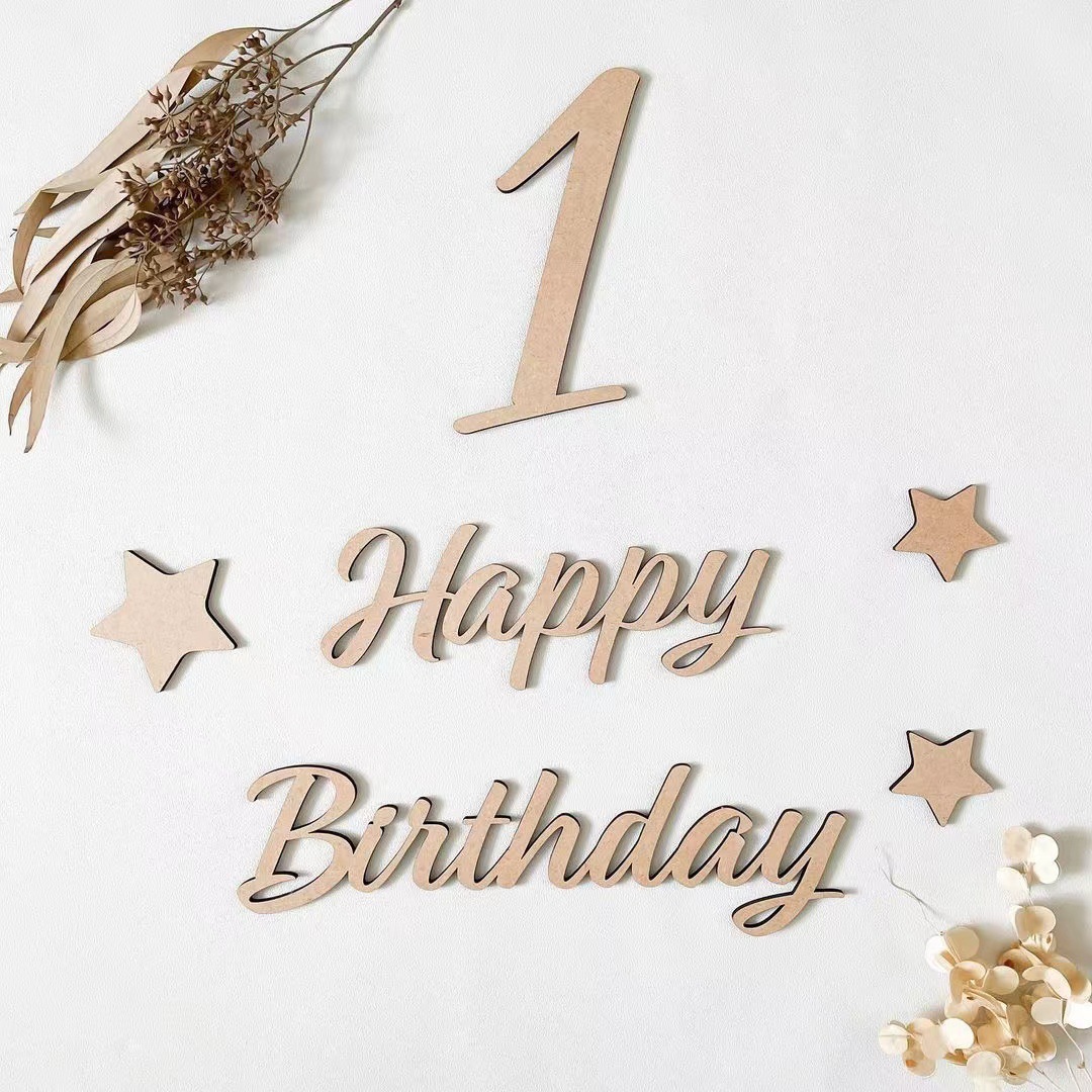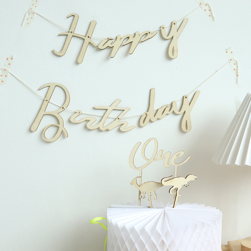 ベビーウッドhappy birthdayお诞生日おめでとうキッズルームパーティーシーン装饰アレンジバックアイテム