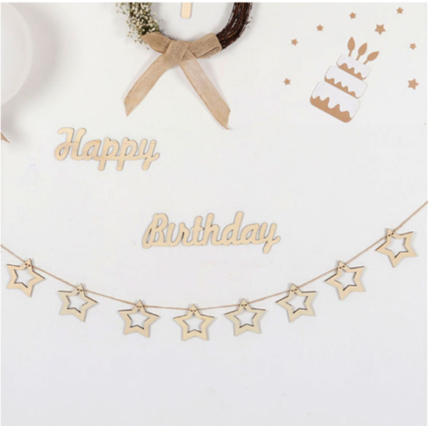 現物木造五芒星誕生日拉旗交旗happy100赤ちゃんパーティーシーン横断幕配置装飾