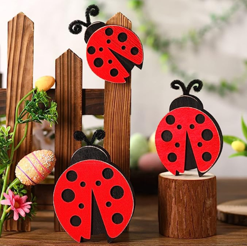 3点セット春夏層トレーテントウムシ飾り赤木製イースターマークキッチン棚展示置物