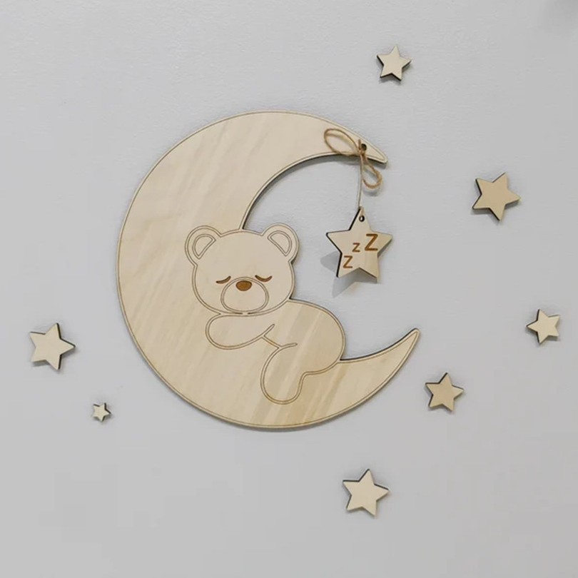 クリスマス木製の月の置物木製の月テディベアのペンダント