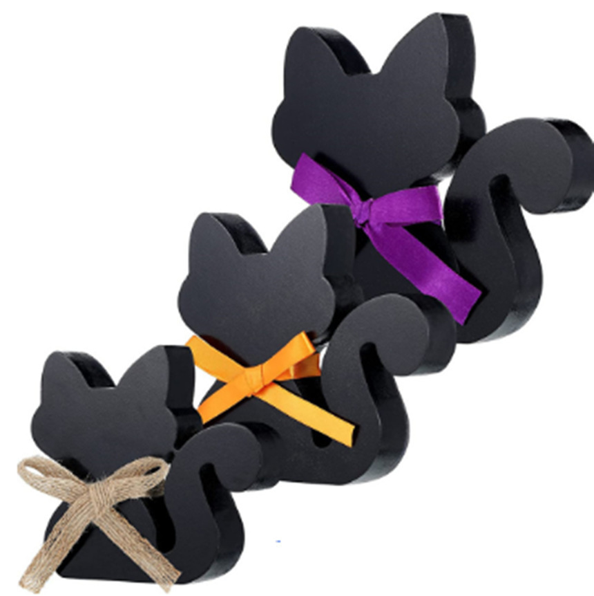 木製ロゴ猫層パレット木製ハロウィーントレイ装飾ホーム祭り装飾工芸品