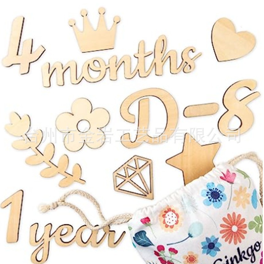 現物木質児童早教乗除法木片数字英語赤ちゃん誕生日記念マイルストーン撮影道具