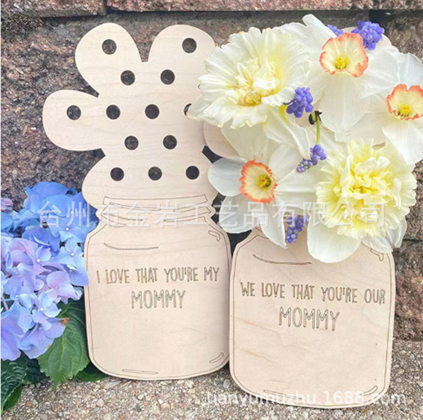 クロスボーダー人気木製生花ドライフラワースタンドアイデア母の日木製工芸品ホーム復活装飾置物