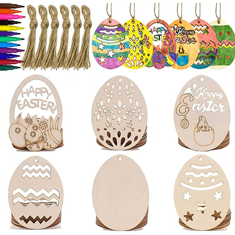 木製イースターエッグストラップストラップ木製イースター子供パーティーdiyダイヤモンド絵装飾工芸品