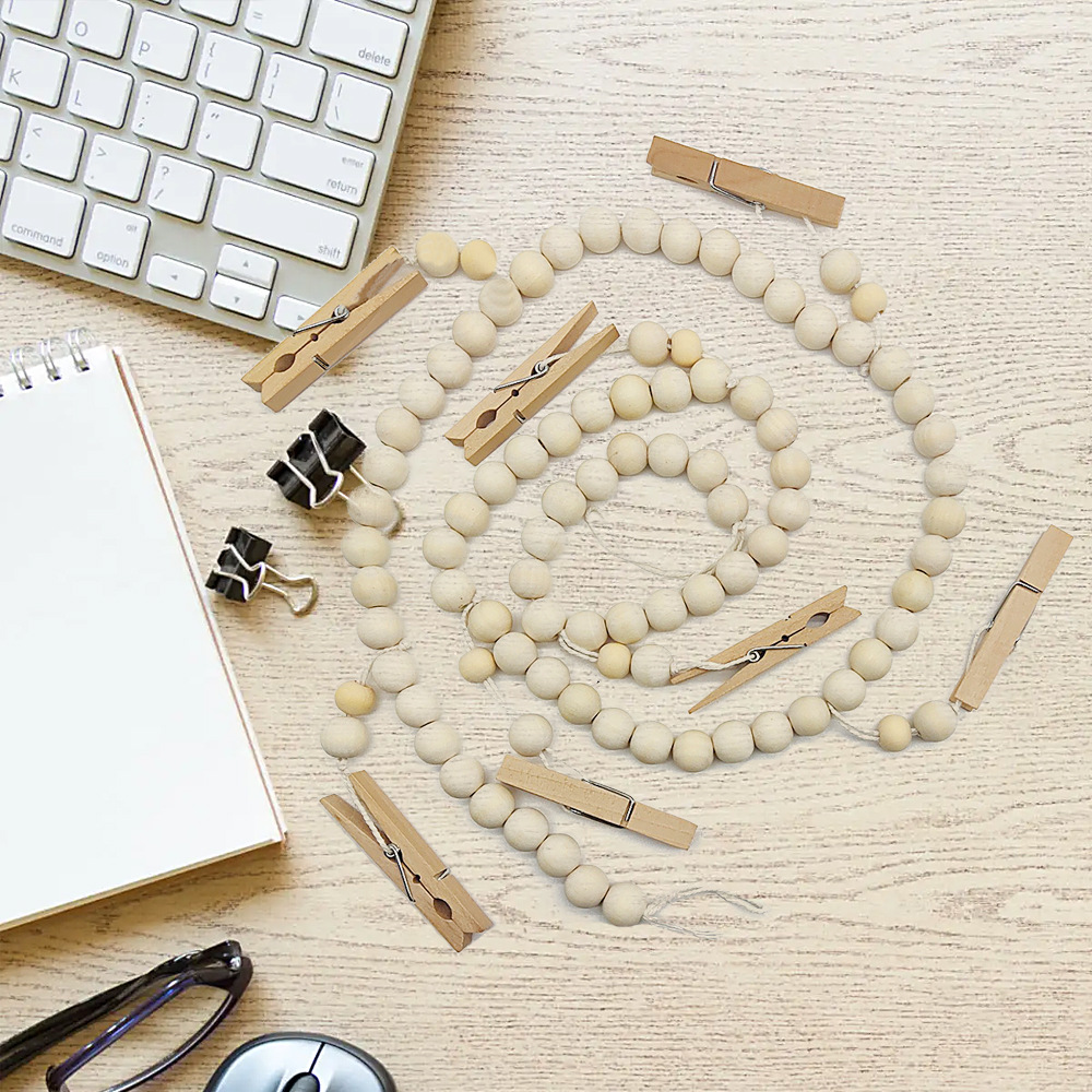 現物ins風麻縄流蘇ビーズ写真クリップ木珠串児童室DIY写真壁家庭装飾品