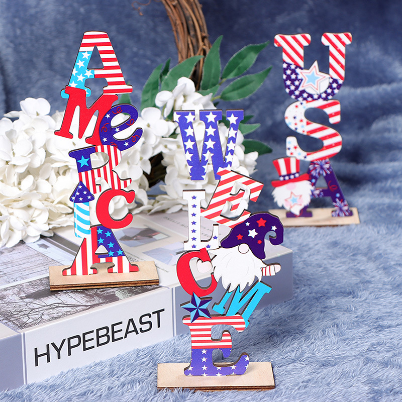 独立記念日合板デスクトップゴブリンレター米国木製7月4日装飾テーブル装飾サインお祝い
