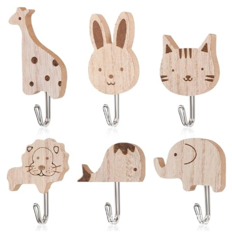 木製動物フックパンチフリー粘着フック木製漫画ウサギ玄関粘着レトロ壁掛けコートフックラック