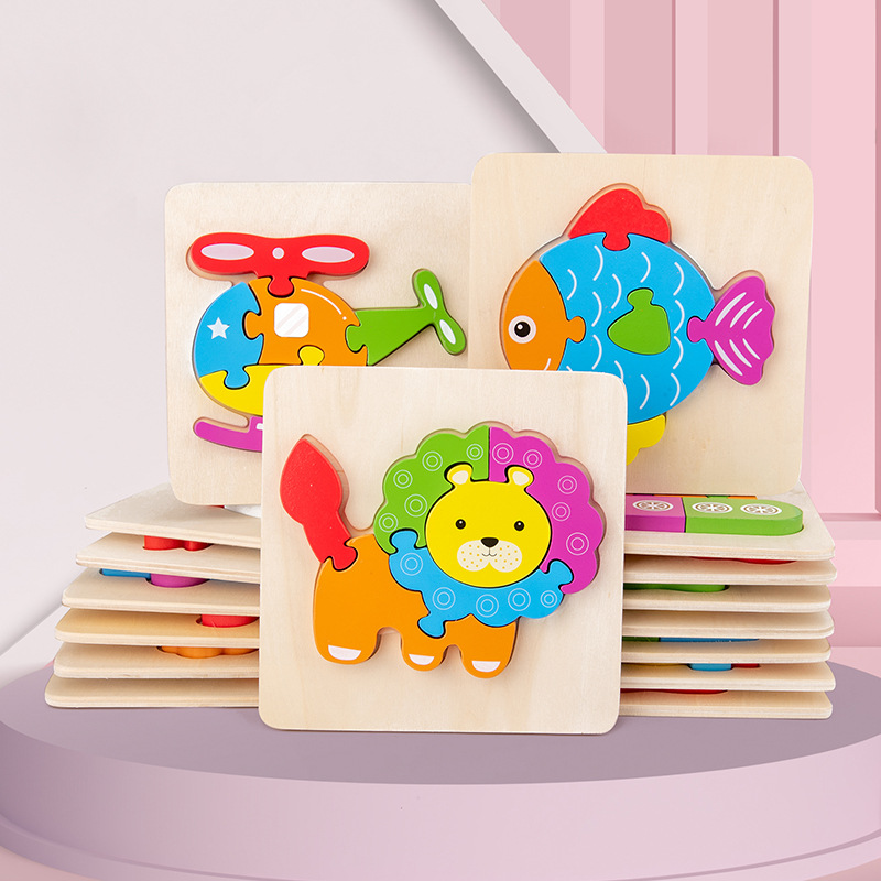 メーカーは子供用木製3D漫画動物交通立体パズルベビーモンテッソーリ教育早期教育おもちゃを作ることができます