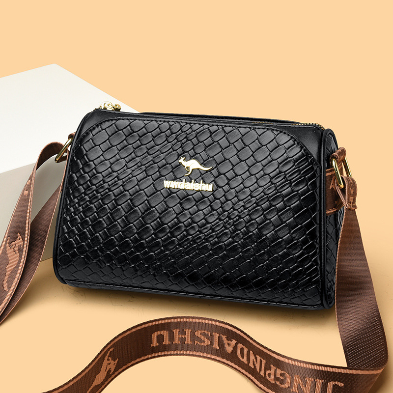 韓国風ファッションハイエンド織り模様ワイドショルダーストラップシングルショルダークロスボディバッグ2025春新作ボストンシリンダーバッグ