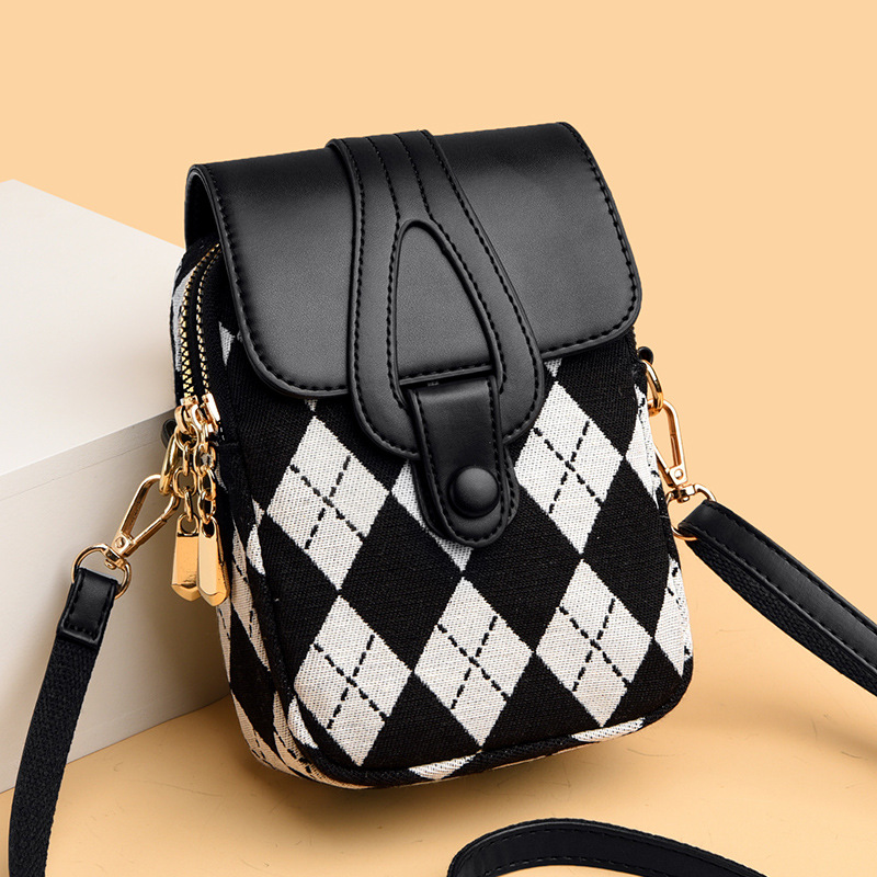 2025 早春の新韓国スタイルのシンプルでファッショナブルなソフト表面携帯電話バッグシングルショルダークロスボディレディースバッグチェック柄コントラストカラー