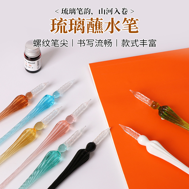 カラーインク釉薬つけペンセットグラデーションカラークリスタル署名ペン学生つけペン釉薬つけインクペン文具
