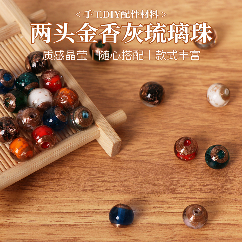 古風2頭の金香灰瑠璃珠アクセサリーペンダント穴あき瑠璃手串散珠diyネックレスビーズ材料