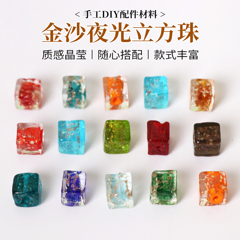 金沙発光立体正方形ガラスビーズ透明ルースビーズ DIY 手織りジュエリーアクセサリーブレスレットビーズ