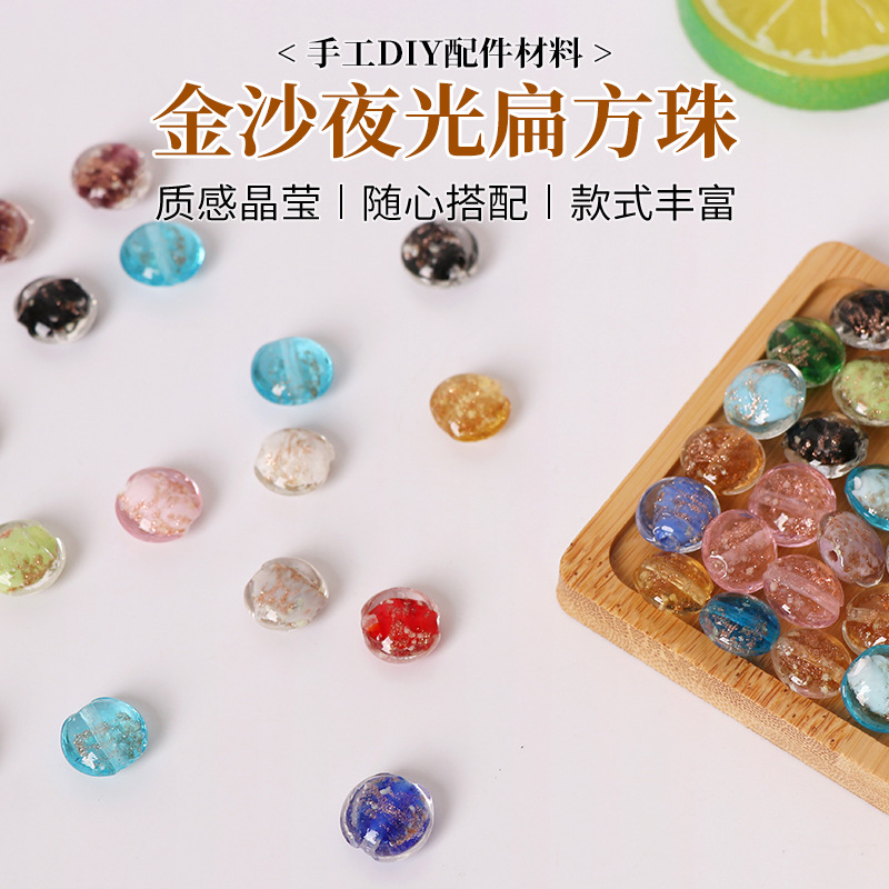 金沙発光フラットスクエアビーズ手作りビーズ diy 材料ジュエリーアクセサリー卸売ガラスルースビーズ手作り材料工場