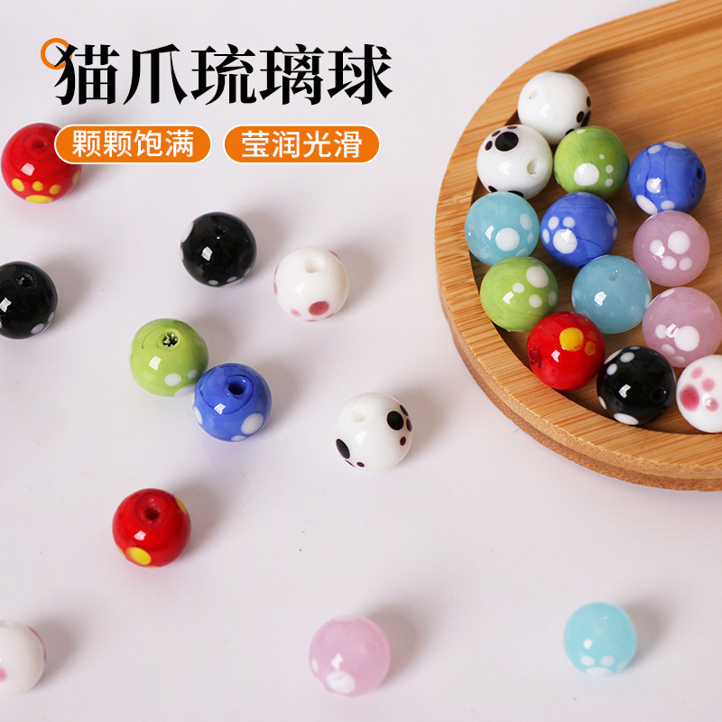 猫の爪ガラスボールかわいい子供のようなストレートホール手焼きビーズ diy イヤリングネックレスブレスレットジュエリールースビーズ