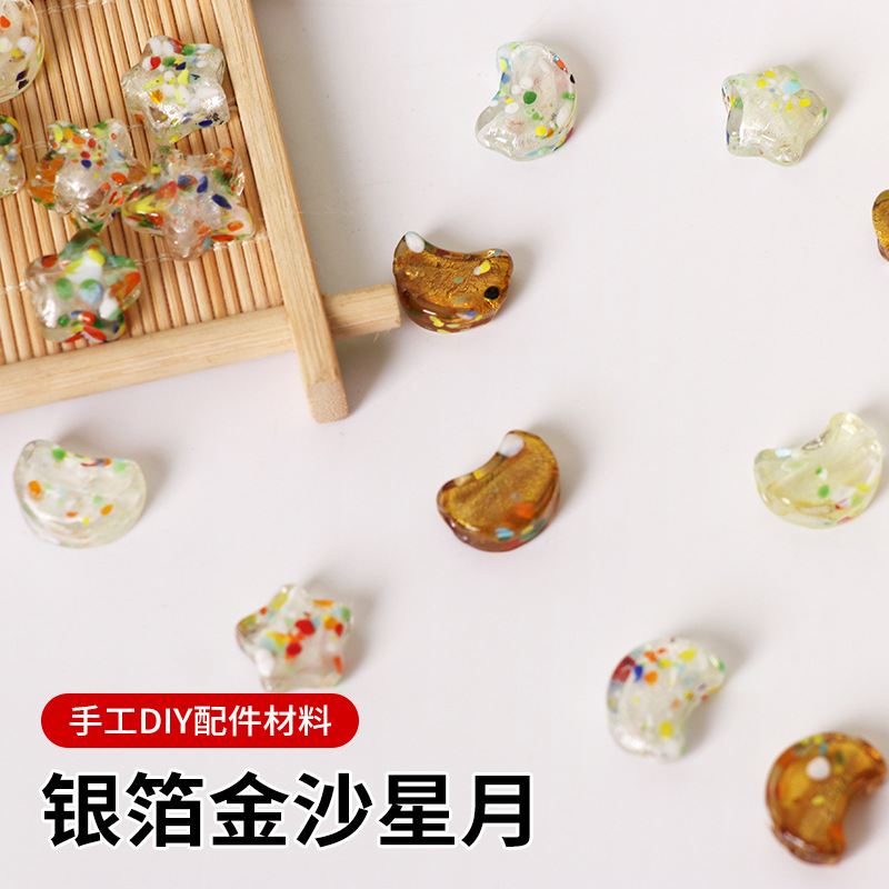銀箔サンドビーチムーンスターガラスビーズルースビーズストレートホールカラードット diy 手作りガラスビーズジュエリーアクセサリー