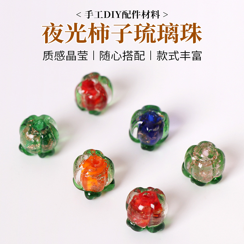 発光穴あき柿ガラスビーズ DIY クリエイティブジュエリーイヤリング柿柿如意古代スタイルのヘアピンレトロ手作り