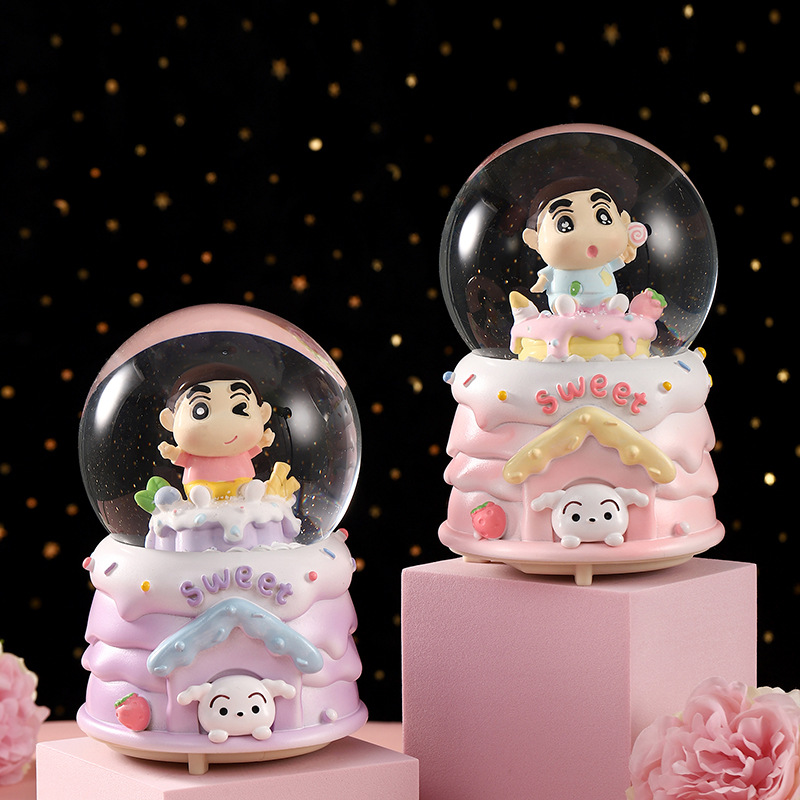クロスボーダー大サイズ自動雪水晶球オルゴール発光オルゴール漫画ホームデスクトップ装飾置物