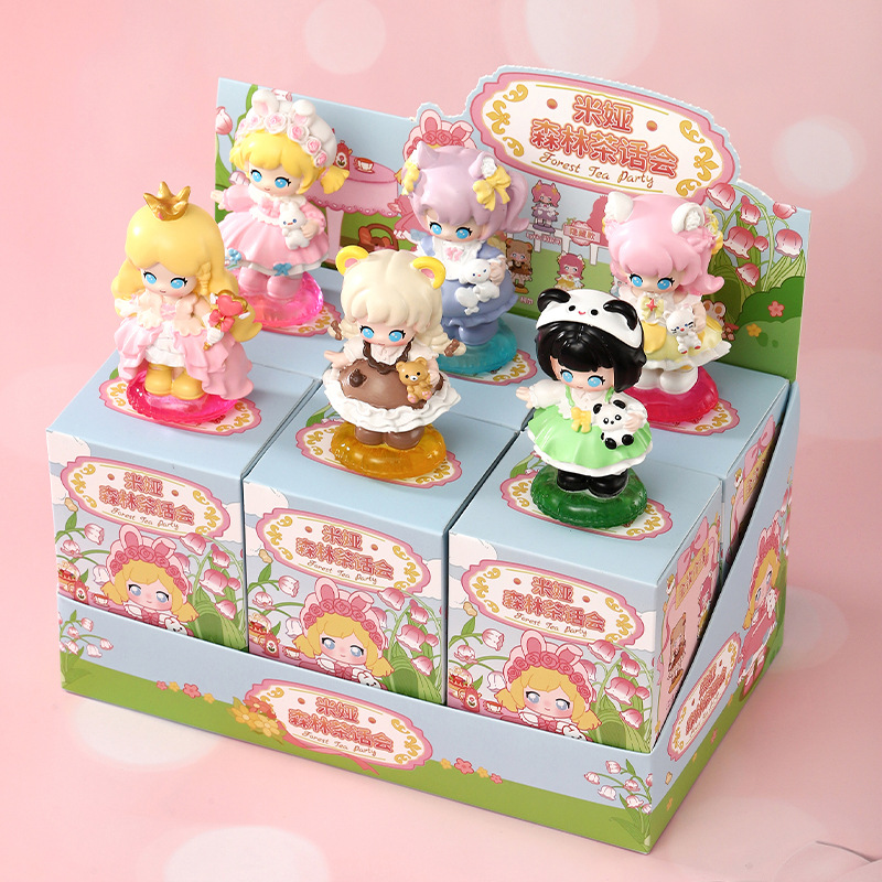 少女の心の森の茶話会のブラインドの箱の潮は手を遊んでかわいい漫画の子供の女の子の誕生日のプレゼントのテーブルの置物を遊びます。