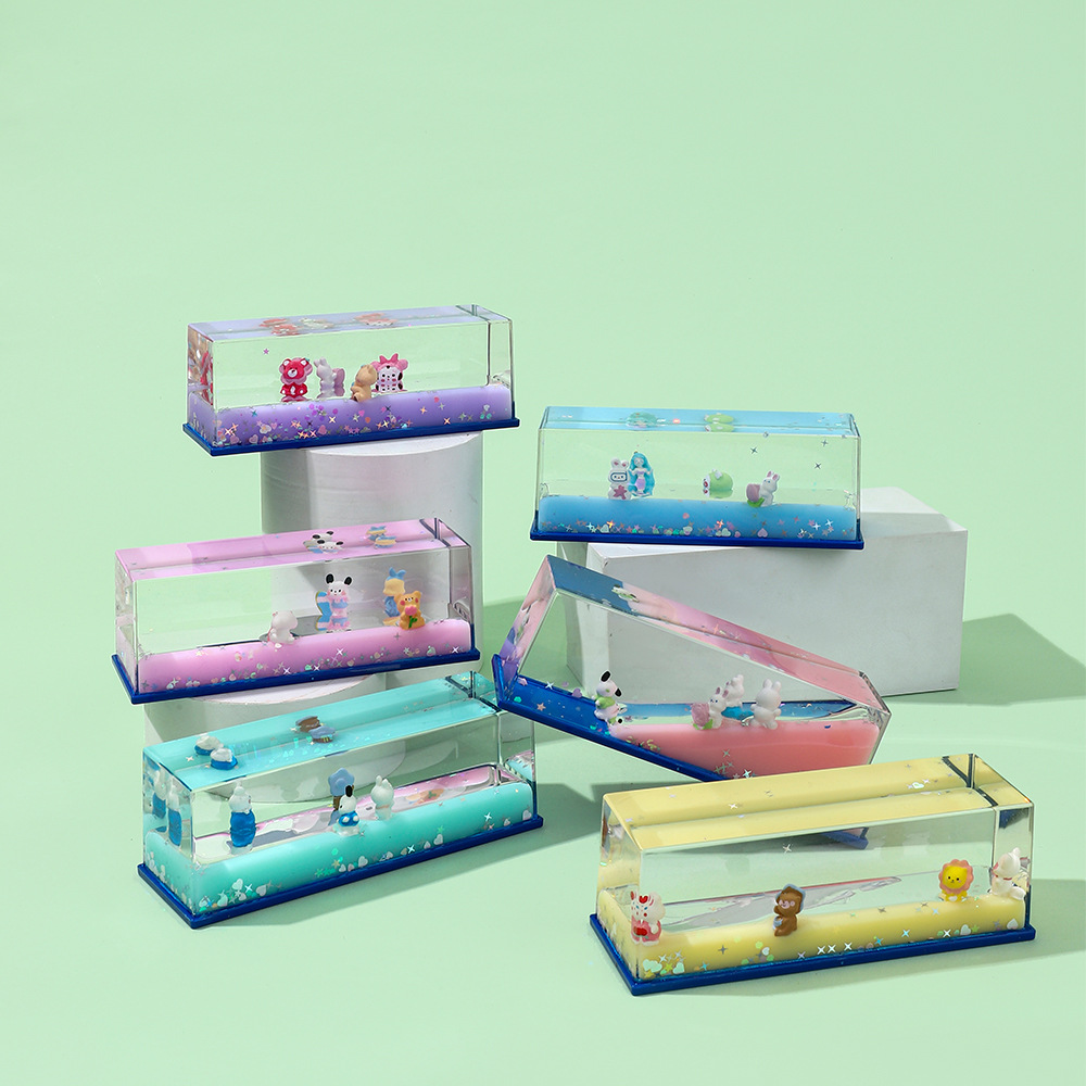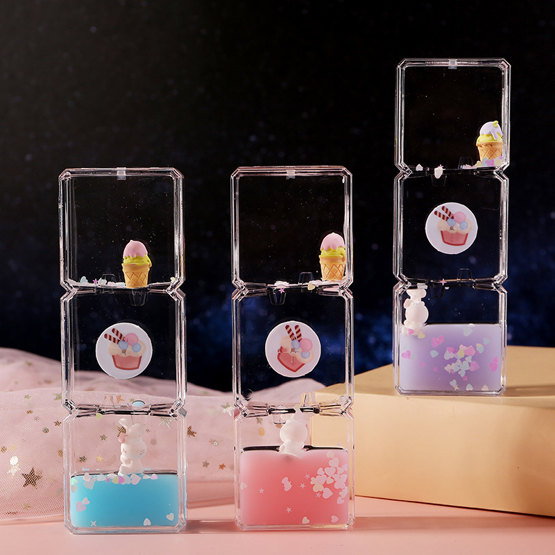 創意的なアイスクリームのウサギの油滴の小さい置物の学生は油の砂時計のテーブルの装飾の液体の流砂の置物を解凍します。