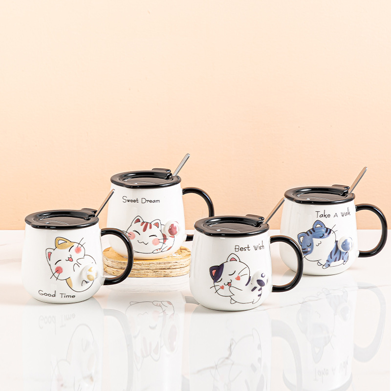 アニメ猫陶磁器カップかわいいマグカップは女子男子の祝日プレゼント学生朝食カップ牛乳カップ