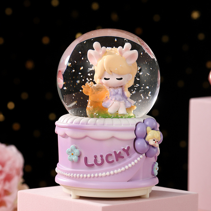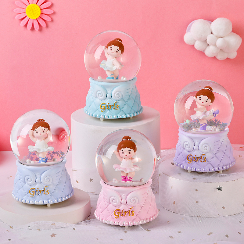 熱い峡谷の漫画の発光の水晶のボールの音楽の箱の少女の創意の置物の学友の誕生日の贈り物の水玉の置物