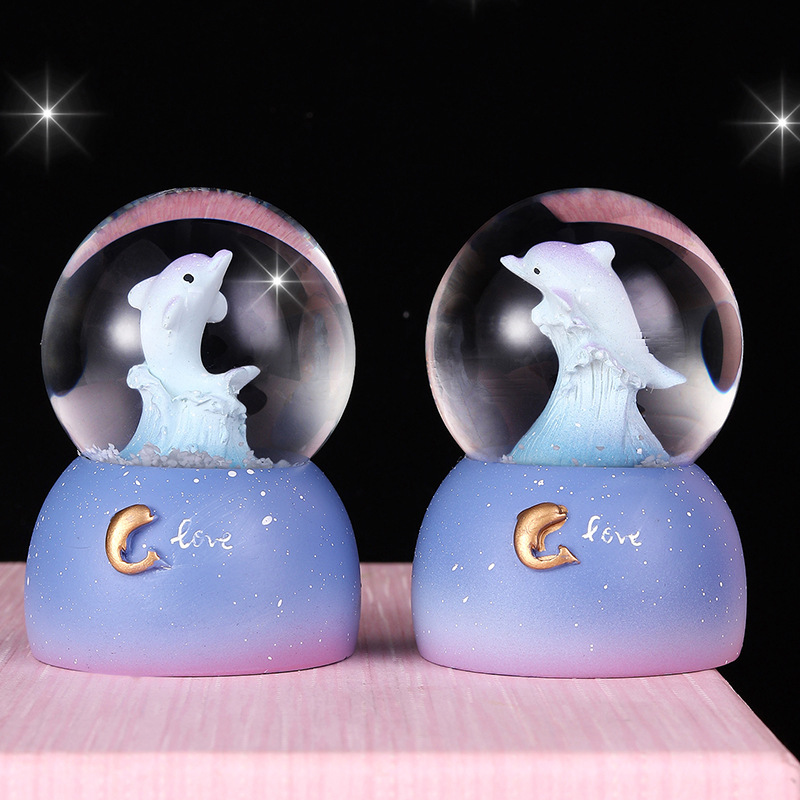 創意海洋生物イルカ水晶玉閃光雪花ガラス玉子供発光玩具樹脂置物卸売り
