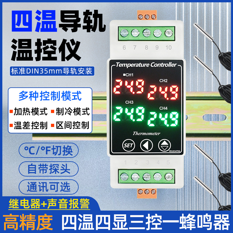 YB1034TMレール式温度調節器マルチ温度調節器四チャンネル温度調節器四路485通信表