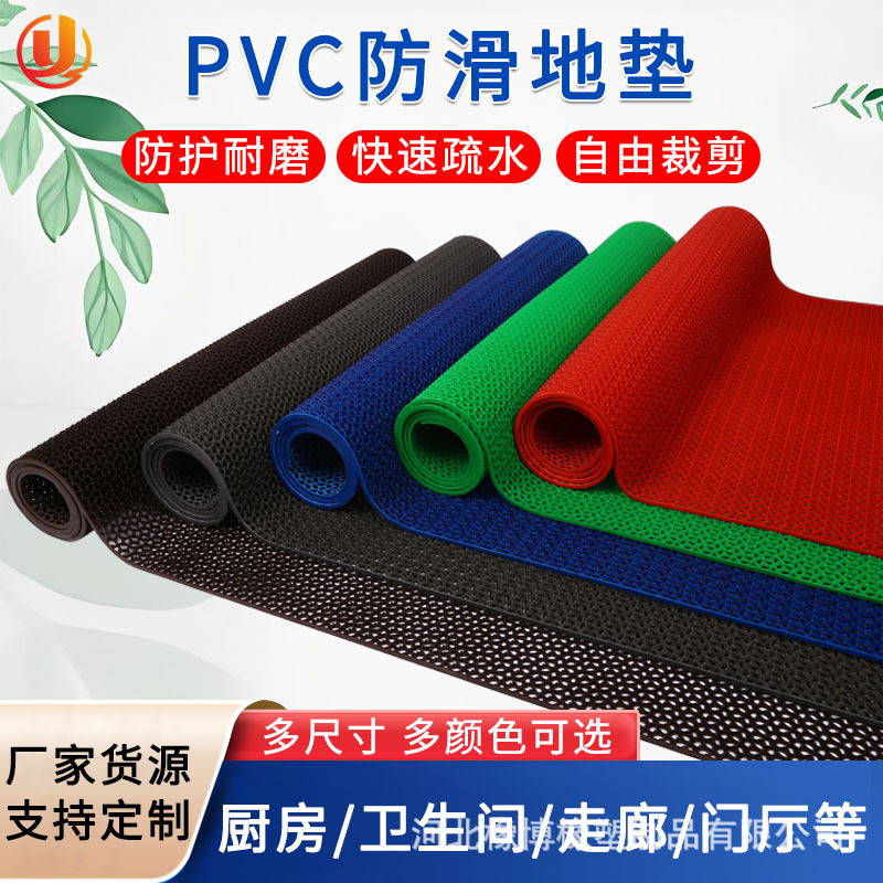 裁断可能なメッシュ透かし彫りフロアマット家庭用商業湿った区域の疎水マットはpvc牛筋滑り止めマットを厚くすることができる