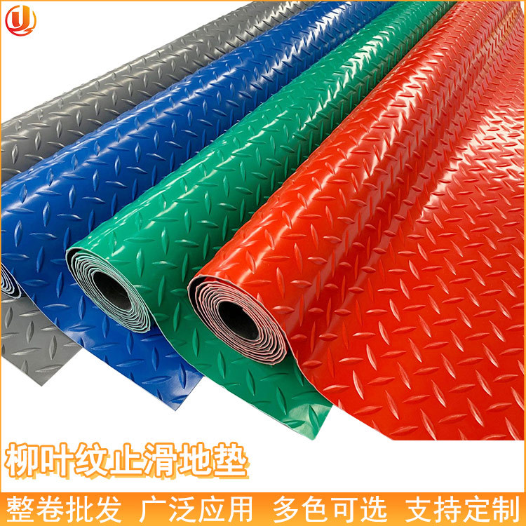 卸売りは黒地防水耐摩耗性滑り止めマットpvcプラスチック柳の葉の紋様を厚くして工業用の床の革を敷きます。