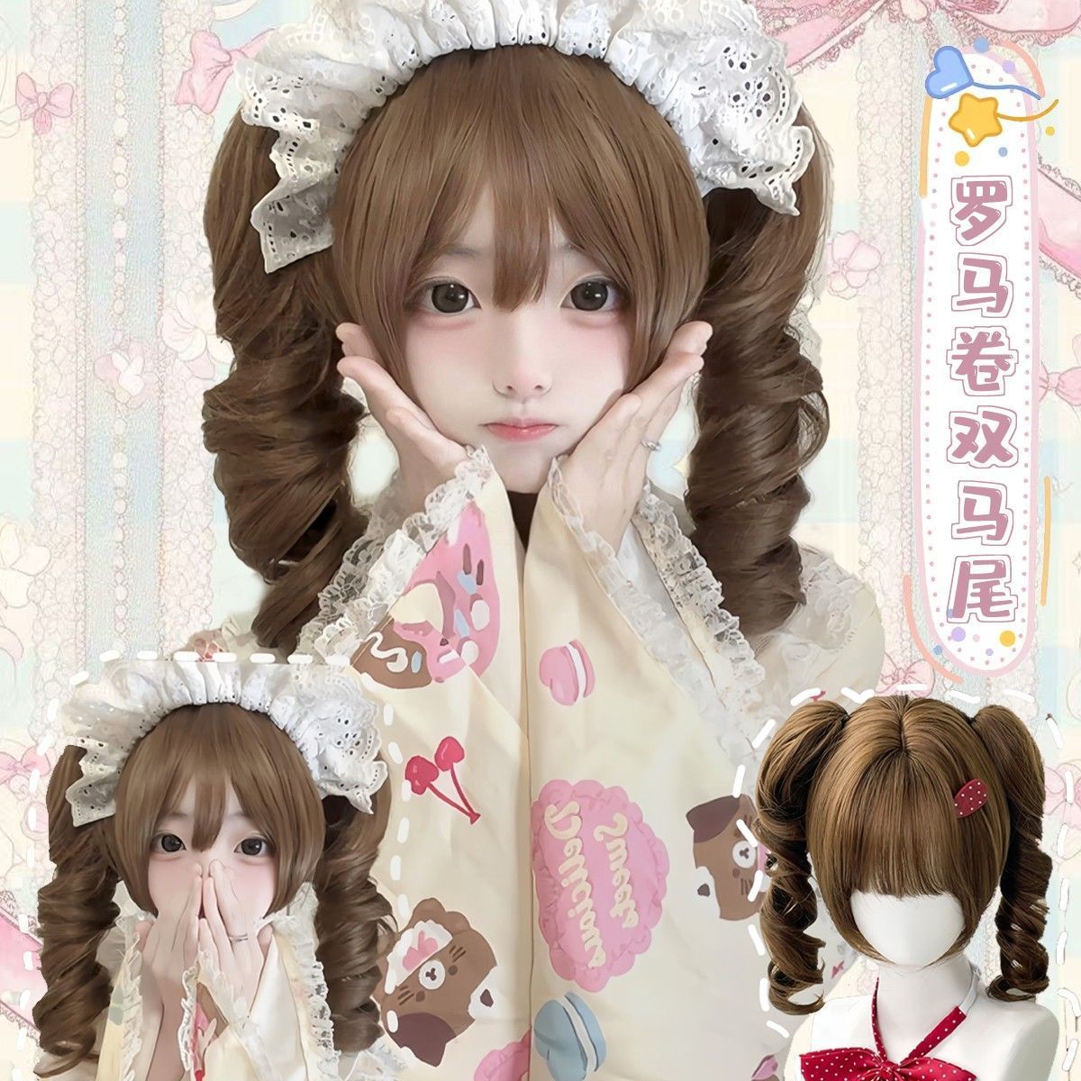 かつらの女性の双馬の尾の虎口はシミュレーションしてローマの巻きのlo娘のロリータの短い巻き髪の斉の前髪の少女感を使います。