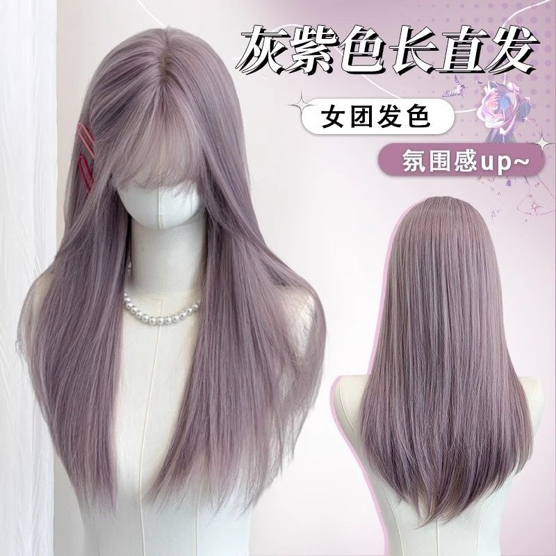 灰色の紫色のかつらの女性の長いまっすぐな髪の空気の前髪のcosは日常のタイプの自然な女性団jkの全体の頭のカバーを使います。