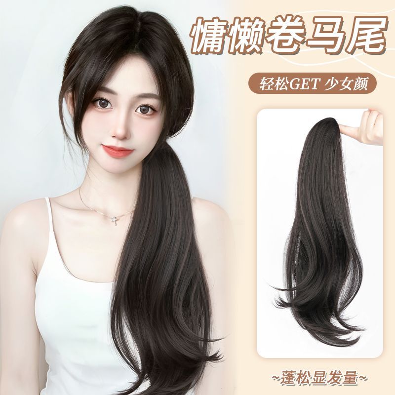 許昌のかつらの女性は挟み式の高い馬尾のネットの赤いマイクロ巻きの超軽い長いカールの自然なシミュレーションの側の馬尾のかつらのお下げをつかみます。