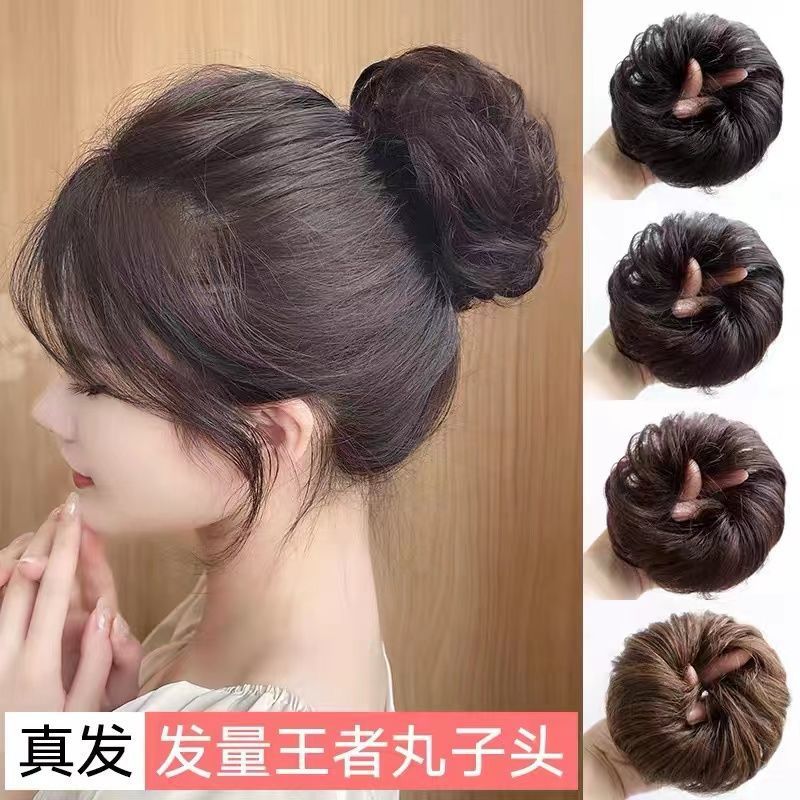 本物の髪のかつらの輪の団子の頭はぐるぐる巻いています。
