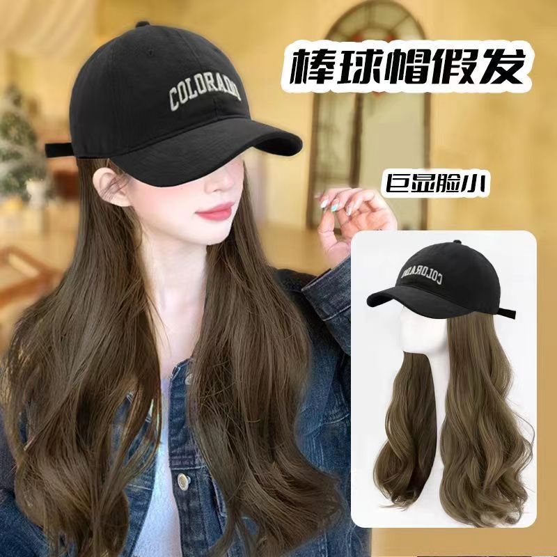 帽子とウィッグ一体型 女性用 ロングカールヘア おしゃれな新作 多用途 野球帽風キャップ 大きなウェーブウィッグ フルウィッグ