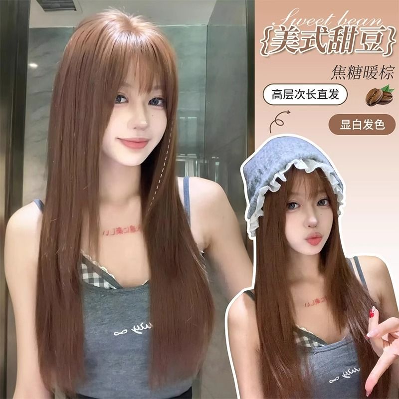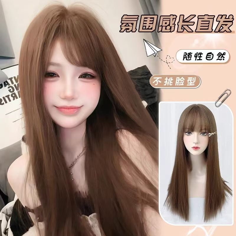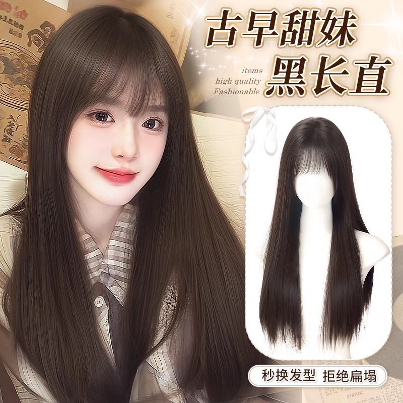 [Wulincun] 女性用ウィッグ、フルヘッドカバー、夏の新しいスタイル、毎日同じ前髪、高レベルの甘いフルウィッグ