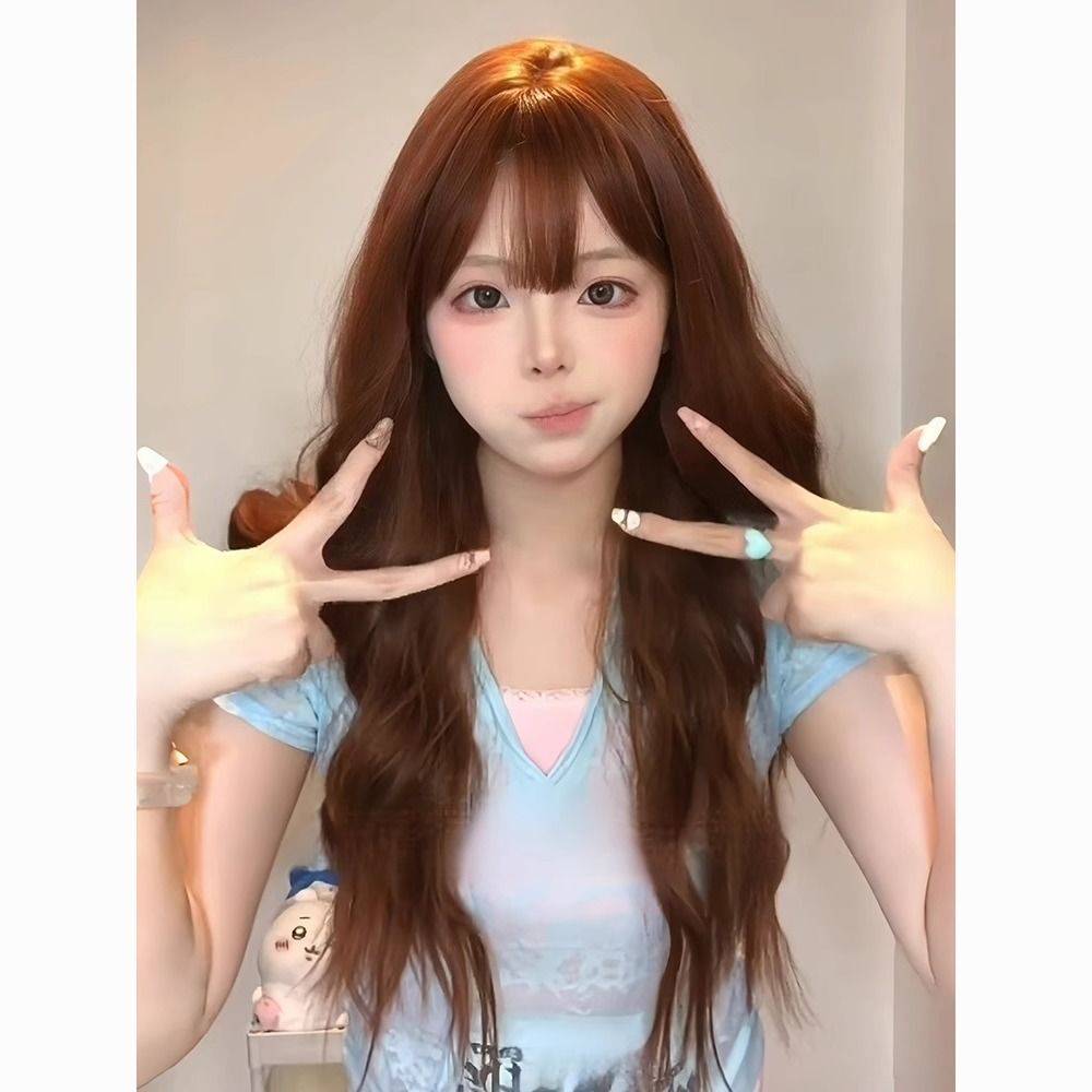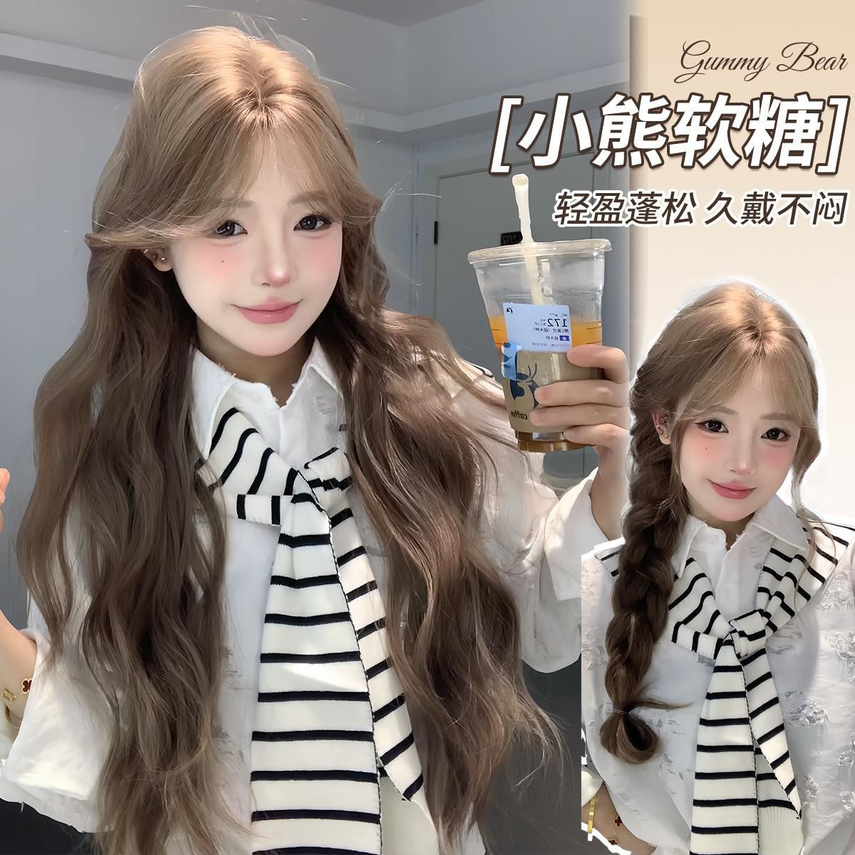 女性用ウィッグ、フルヘッドカバー、春夏スタイル、ふわふわナチュラル前髪、大きなウェーブのかかったロング巻き毛、デイリーフルウィッグ