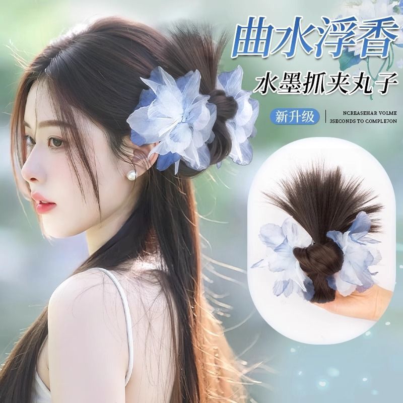 鶏毛ボールヘッドウィッグクリップ女性用、ゆるい雰囲気、ふわふわローヘアスタイル、後頭部ウィッグヘアゴム
