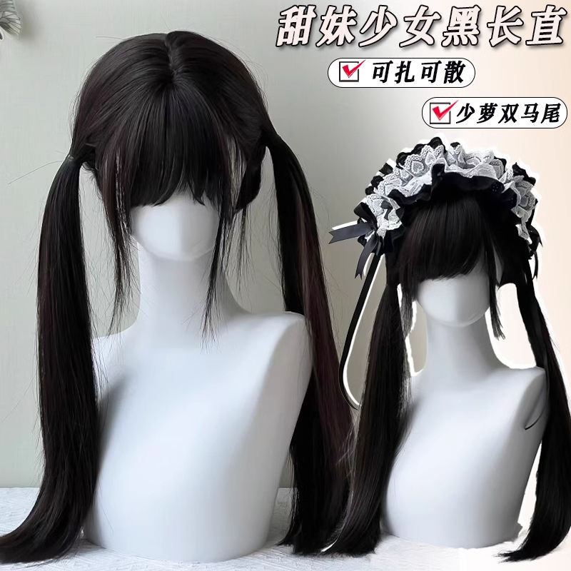【髪を刺す】黒長直少羅双馬尾かつら女全頭セットJK甜妹lolitaかつらセット