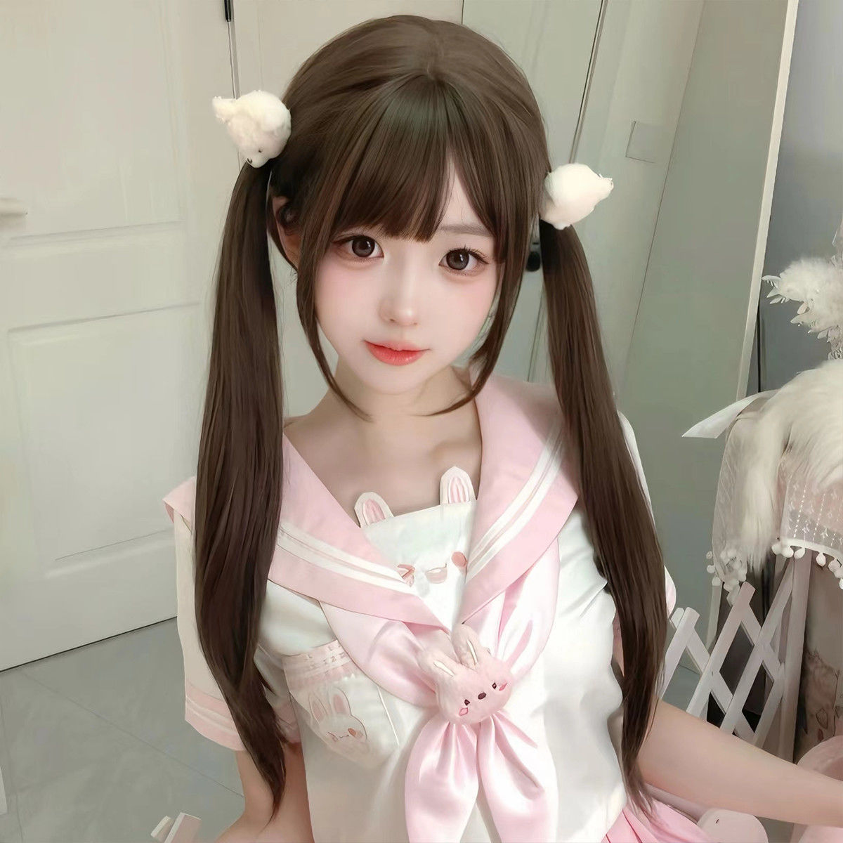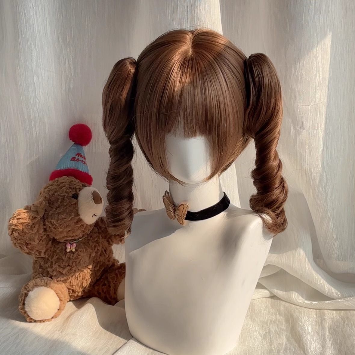偽の髪の女性の長髪65cmのロリータは前髪を刺してツインテールjkを撮影して全頭カバーを整えた