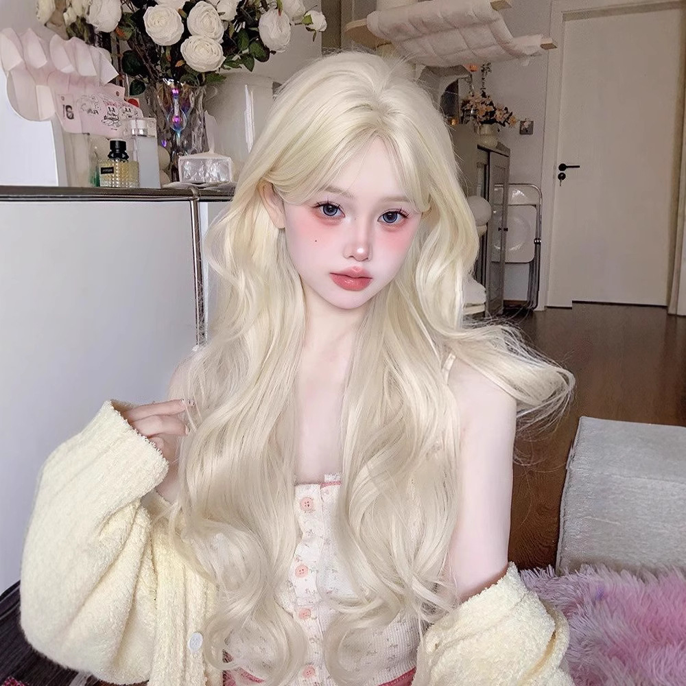 大きなウェーブのかかったロング巻き毛、春夏の雰囲気、ロング巻き毛、フルヘッドギア、ネットセレブ、薄い、ファッショナブル、自然なふわふわ人工毛