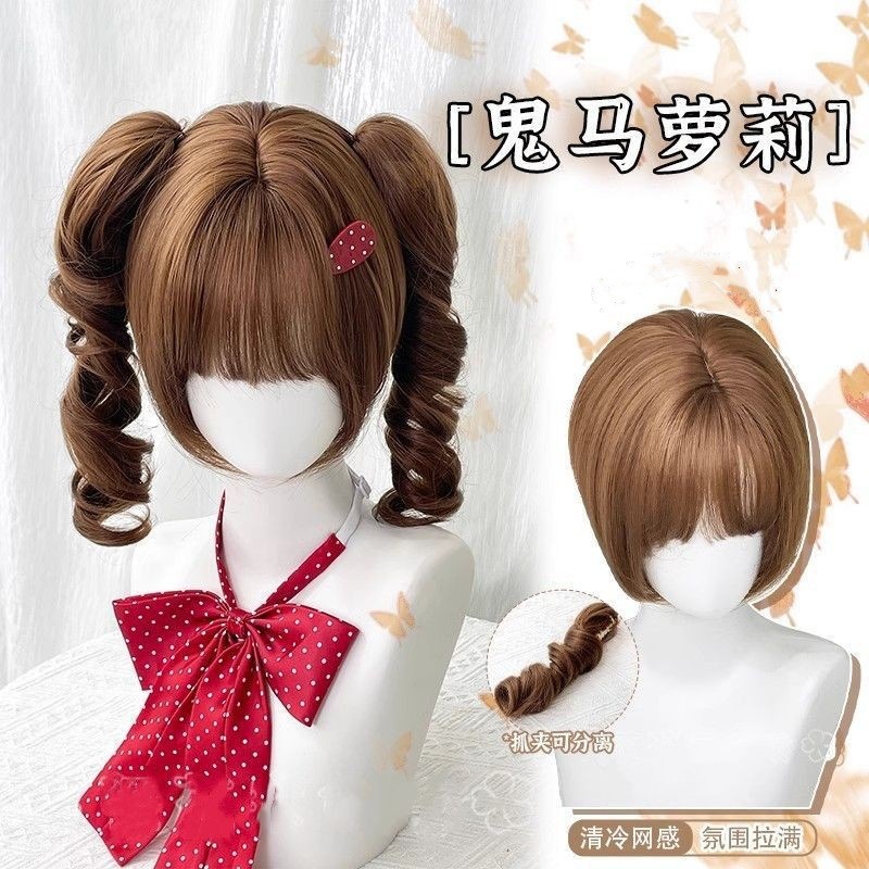 【鬼馬ローリ】かつら女かわいいローマ巻き馬尾ショートヘアlolita甘い自然日常全頭カバー