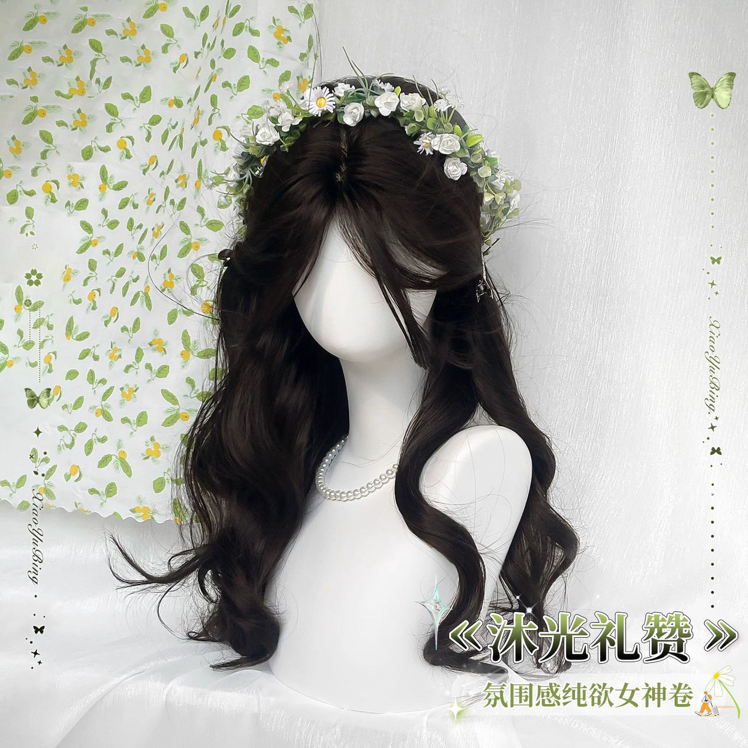 【沐光礼賛】かつらの女性の長い髪の春夏のスタイルの韓国系の気質の中で大きい波の長い巻き髪の全頭カバー式を分けます。